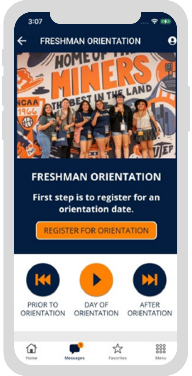 UTEP earned recognition for delivering a structured, mobile-first New Student Experience that guides students before, during, and after orientation, replacing fragmented communications with a single, engaging experience that drove early adoption and nearly 500,000 screen views during the NSO period