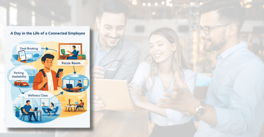 A day in the life of a connected employee might look like this: they reserve a desk near their team, book a focus room for a mid-morning session, check parking availability, grab a wellness class at lunch, and navigate the office efficiently—all without switching between multiple apps.