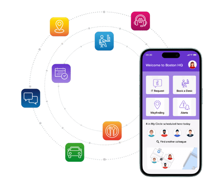 A true employee app brings together the moments that shape daily work: booking a desk, finding a room, ordering food, reviewing a policy, submitting a facilities ticket, locating a colleague, or getting the next step in a workflow without bouncing between tools.