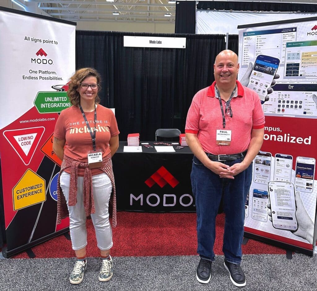 Paul McDermott and Micaela Kobeissi, who represented Modo at the event, engaged with attendees on how digital platforms can serve as the connective tissue between students, faculty, and staff, bridging communication gaps and helping campuses evolve faster.