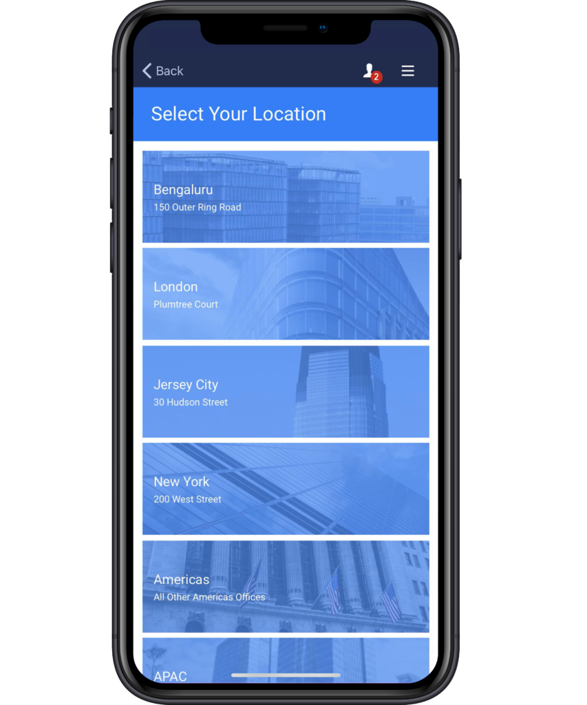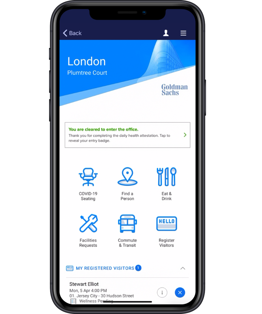 A. A fundamental piece of Goldman Sachs’ culture is trying to think ahead to what’s around the corner. How do we create a positive experience for our employees and our clients? The launch of two new buildings in Bengaluru and London gave us a great opportunity to provide an experience that would allow the employees there to engage with the buildings. The urgency piece really came with COVID when Canopy, our mobile app, was already in place. At that point it had a personalized experience in Bengaluru, in London and provided a good foundation around which we could pivot.