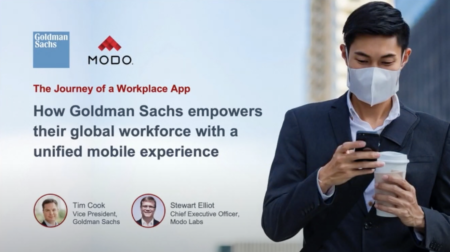Modo thanks Tim for sharing Goldman Sachs’ experience. It is incredibly rewarding to see these results on our platform. The dialogue and collaboration with Goldman Sachs have led to capabilities that are available to many organizations out there. We’ve focused on building a platform that is the basis for agility, for the workplace and for the digital experience. It doesn’t matter whether you’re technical or non-technical, you can take advantage of this platform and make a workplace app with very little effort because the out-of-box features support a first-class mobile experience. And as Tim shows, the Modo platform can also support so much more. It’s all about the art of the possible. Crowdsourcing your innovation across anybody that would like to participate in your workplace experience will allow you to accelerate, like Goldman Sachs has in their own journey with Modo.